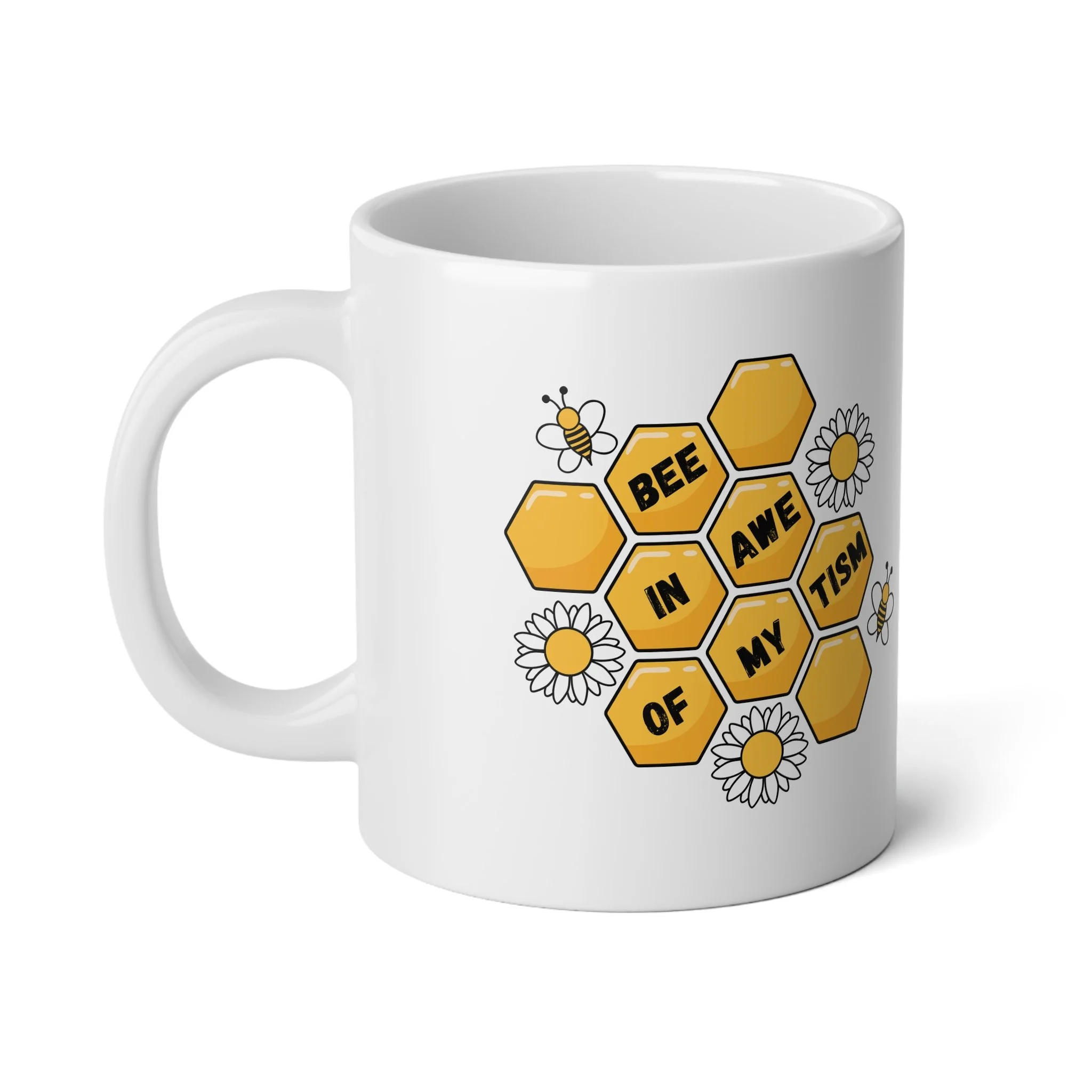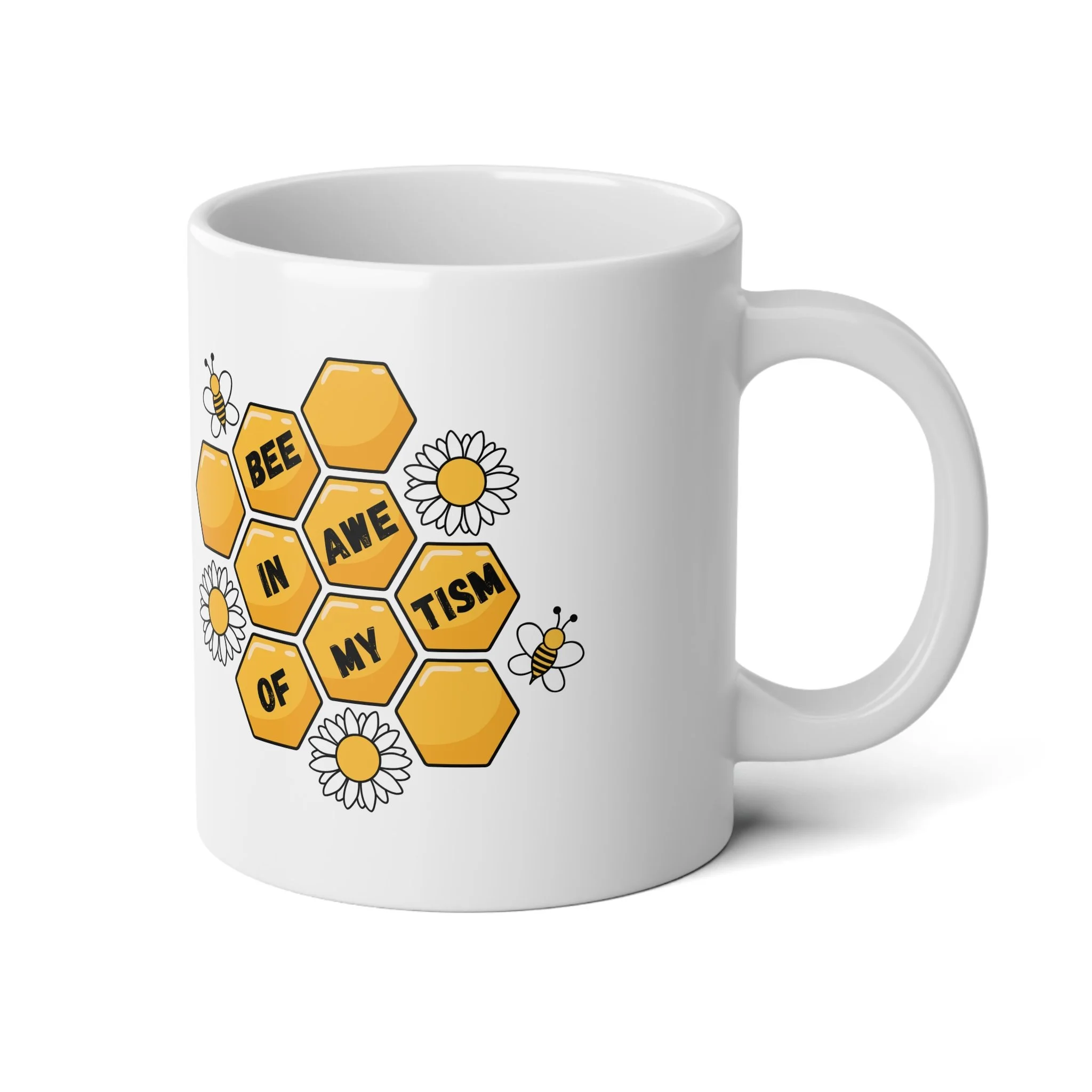 Perfect for that extra boost of coffee or large amounts of hot cocoa on a rainy day, this ceramic mug comes in the perfect size: 20oz (0.6l). Thanks to the ORCA coating, your original designs will be printed in picture-perfect quality on the white ceramic base with a glossy finish. The mug features a C-shaped, easy-grip handle.